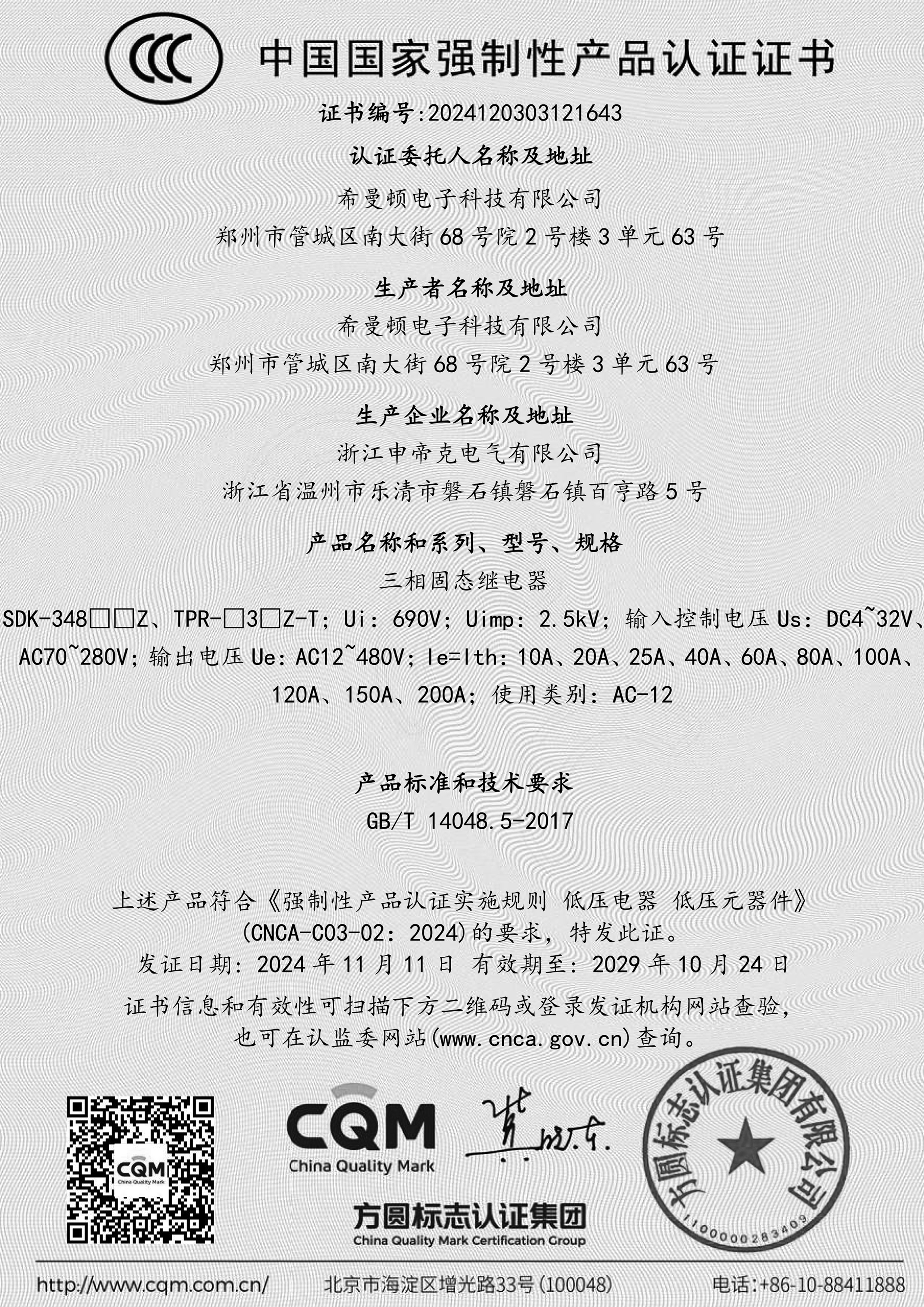 希曼頓電子科技有限公司,前身北京希曼頓科技研究所,創立于1985年,是以設計開發、銷售全系列工業級交流固態繼電器(SSR)、一體化電力調整器為主的現代化企業。希曼頓電子科技有限公司主要產品是方塊型固態繼電器、導軌小型固態調壓器、SCR模塊、全隔離調壓模塊、電磁繼電器、PCB式固態繼電器、R型調壓器、信號輸入分類、整流橋、周波控制器、電磁繼電器、電力模塊等產品。